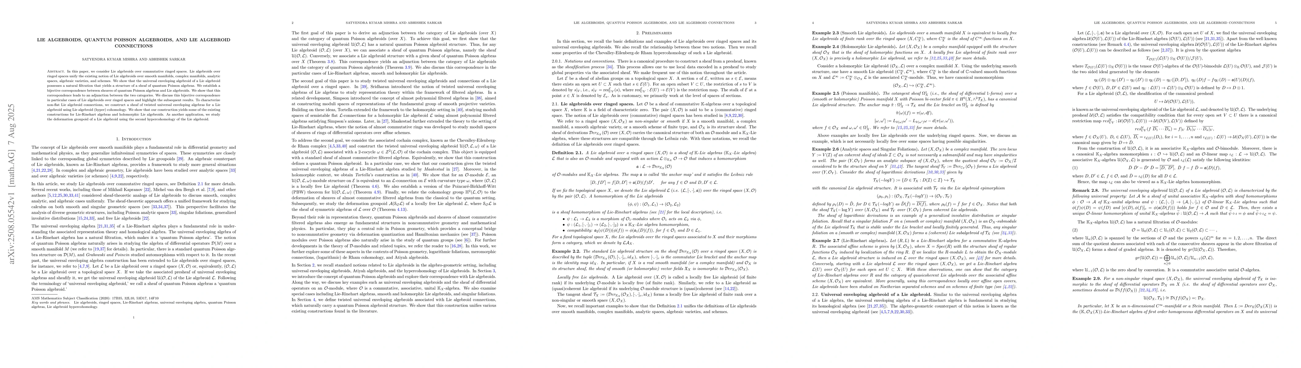 In this paper, we consider Lie algebroids over commutative ringed spaces. Lie algebroids over ringed spaces unify the existing notion of Lie algebroids over smooth manifolds, complex manifolds, analytic spaces, algebraic varieties, and schemes. We show that the universal enveloping algebroid of a Lie algebroid possesses a natural filtration that yields a structure of a sheaf of quantum Poisson algebras. We establish a bijective correspondence between sheaves of quantum Poisson algebras and Lie algebroids. We show that this correspondence leads to an adjunction between the two categories. We discuss this bijective correspondence in particular cases of Lie algebroids over ringed spaces and highlight the subsequent results. To characterize non-flat Lie algebroid connections, we construct a sheaf of twisted universal enveloping algebras for a Lie algebroid using Lie algebroid (hyper) cohomology. We show that our construction yields some of the existing constructions for Lie-Rinehart algebras and holomorphic Lie algebroids. As another application, we study the deformation groupoid of a Lie algebroid using the second hypercohomology of the Lie algebroid.