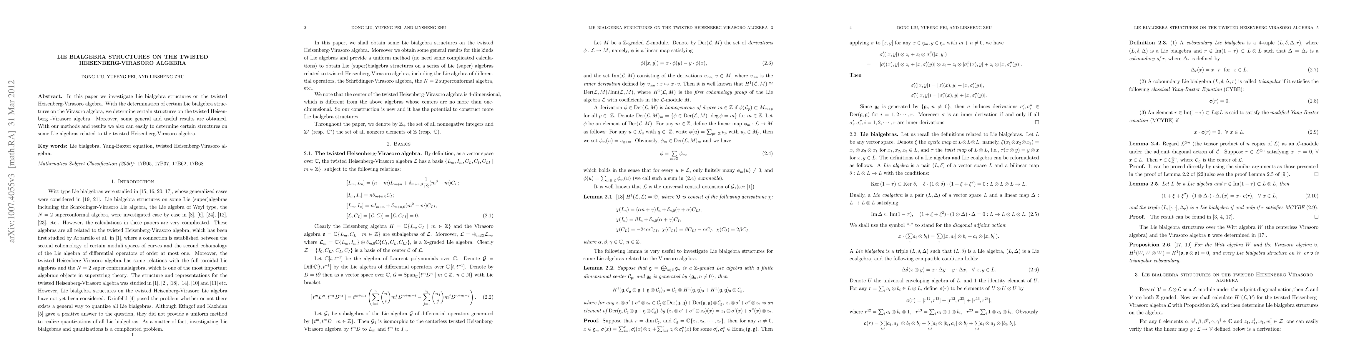 The paper investigates Lie bialgebra structures on the twisted Heisenberg-Virasoro algebra using classification results from the Virasoro algebra, extending methods to related Lie algebras.