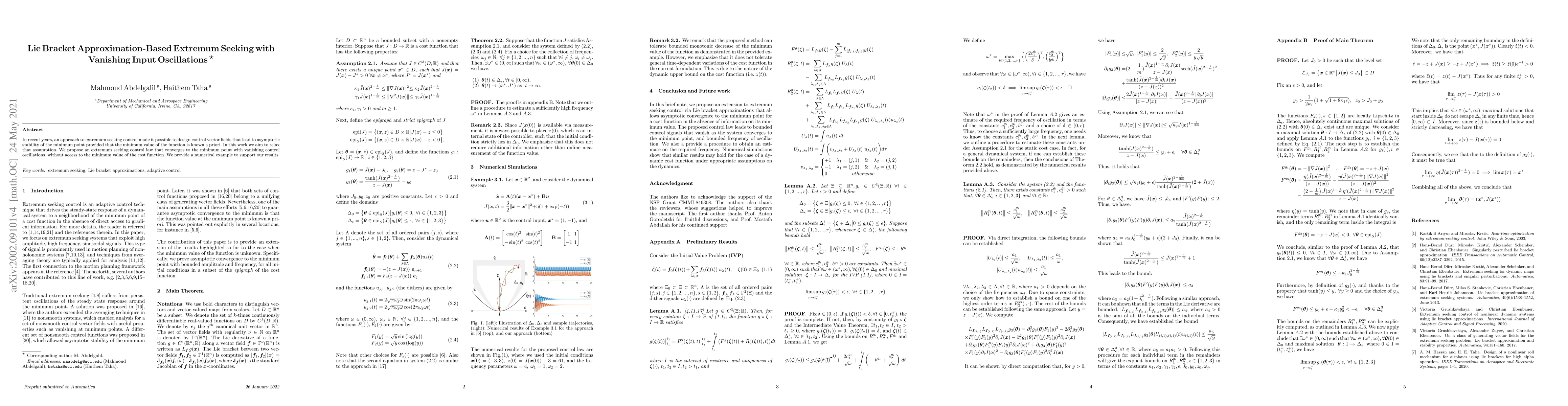 In recent years, an approach to extremum seeking control made it possible to design control vector fields that lead to asymptotic stability of the minimum point provided that the minimum value of the function is known a priori. In this work, we aim to relax that assumption. We propose an extremum-seeking control law that converges to the minimum point with vanishing control oscillations, without access to the minimum value of the cost function. We provide a numerical example to support our results.