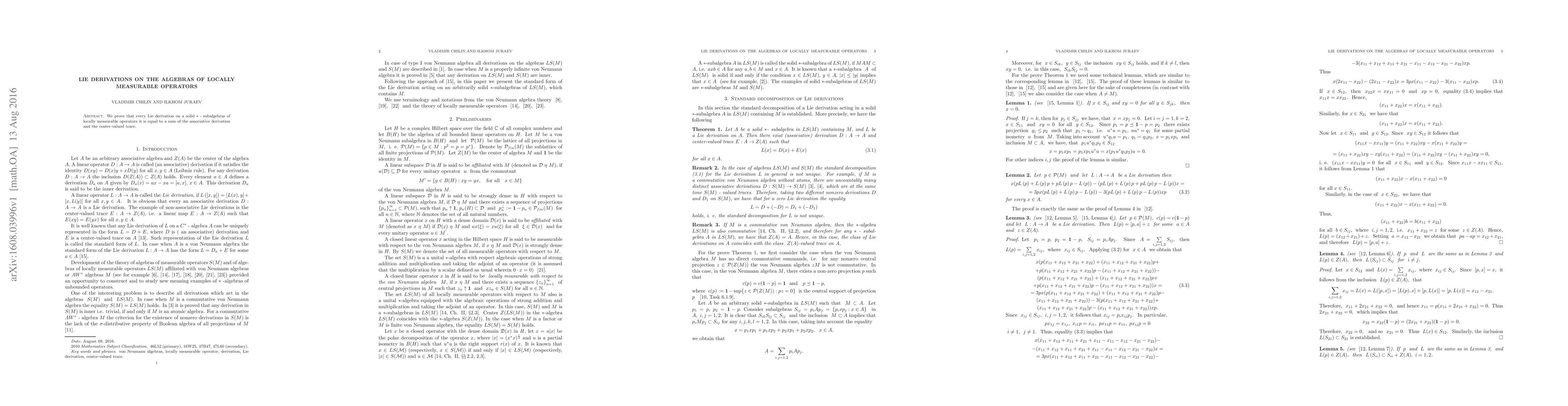 We prove that every Lie derivation on a solid $\star-$subalgebras of locally measurable operators it is equal to a sum of the associative derivation and the center-valued trace.