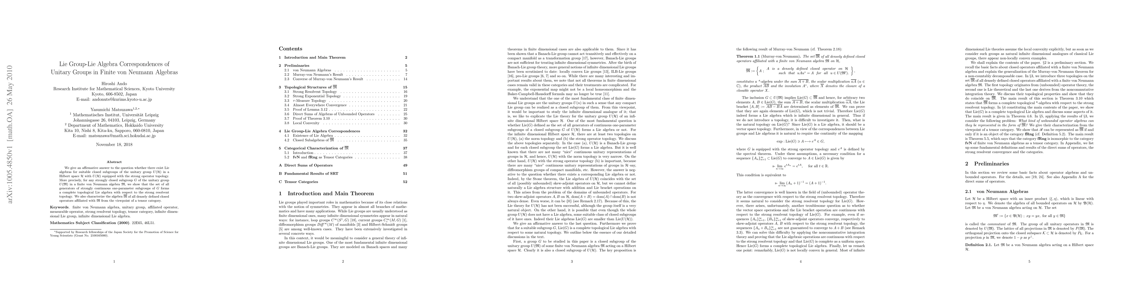 Research shows that for finite von Neumann algebras, a complete topological Lie algebra exists for generators of strongly continuous one-parameter subgroups of unitary groups, providing new insights into the relationship between Lie groups and operator algebras.
