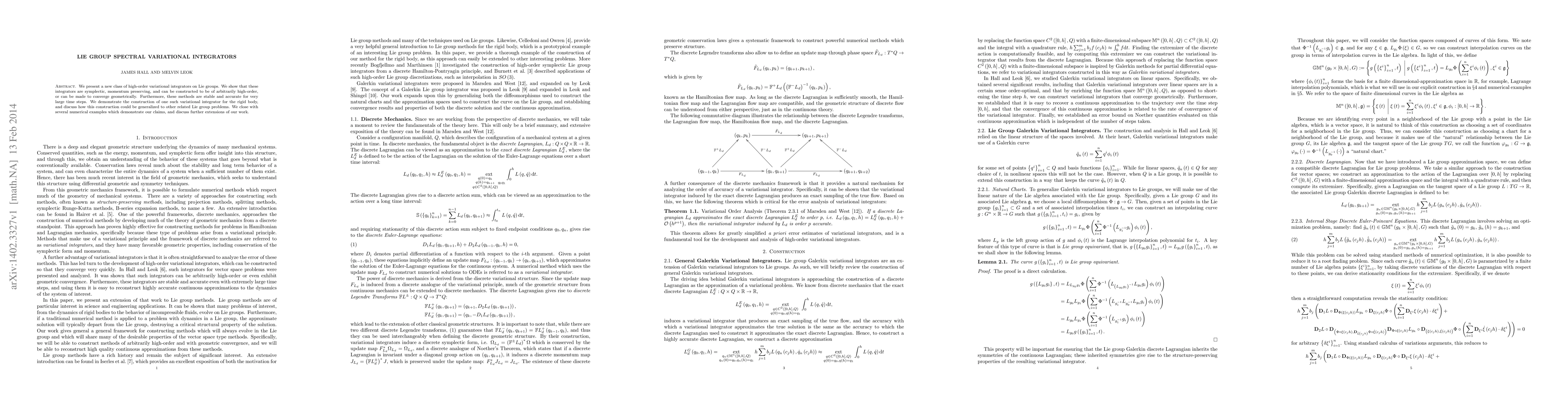 This paper introduces a new class of high-order variational integrators on Lie groups that are symplectic, momentum preserving, and can be constructed to be arbitrarily high-order or geometrically convergent. The authors demonstrate the construction of such an integrator for the rigid body and provide numerical examples to validate their claims.