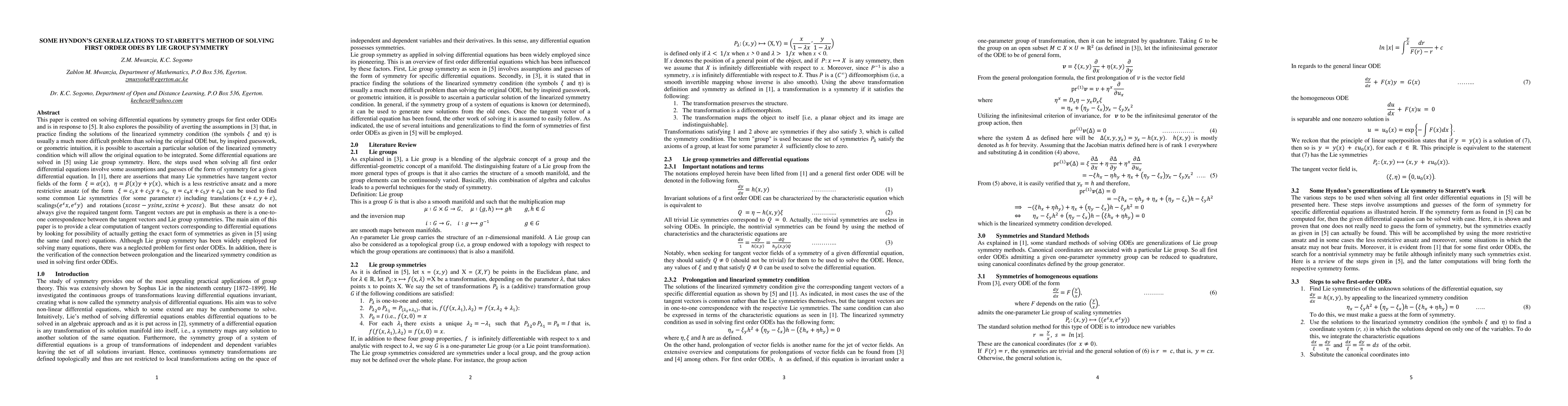 This paper is centred on solving differential equations by symmetry groups for first order ODEs and is in response to Starrett (2007). It also explores the possibility of averting the assumptions by Olver (2000) that, in practice finding the solutions of the linearized symmetry condition is usually a much more difficult problem than solving the original ODE but, by inspired guesswork or geometric intuition, it is possible to ascertain a particular solution of the linearized symmetry condition. In addition, there is the verification of the connection between prolongation and the linearized symmetry condition as used in solving first order ODEs.