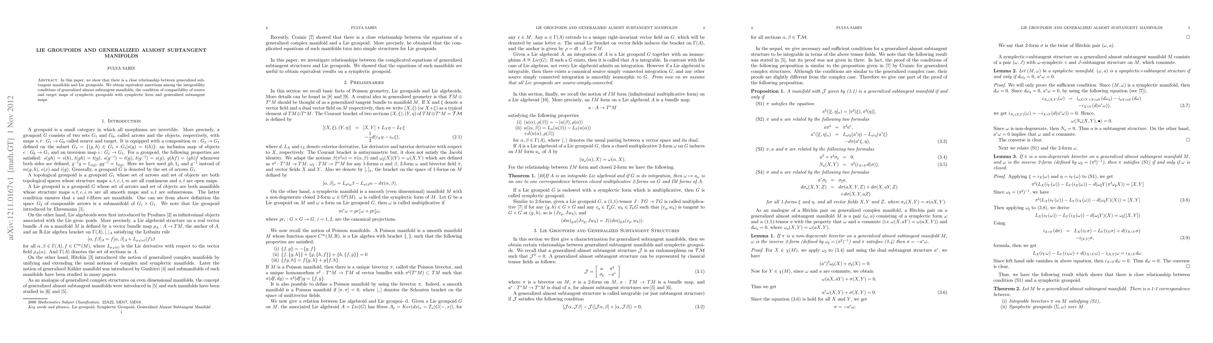 This paper establishes a connection between generalized subtangent manifolds and Lie groupoids, demonstrating equivalent conditions linking integrability of generalized almost subtangent manifolds with compatibility of source and target maps of symplectic groupoids with the symplectic form and generalized subtangent maps.