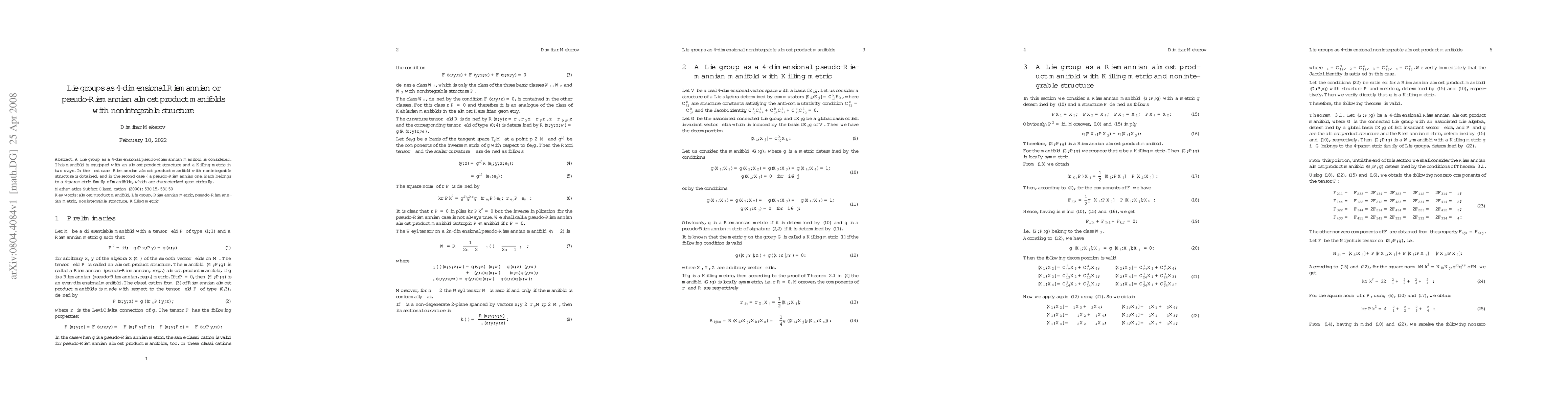 This paper explores Lie groups as 4-dimensional pseudo-Riemannian manifolds with an almost product structure, leading to either Riemannian or pseudo-Riemannian manifolds with nonintegrable structures, both belonging to a 4-parametric family characterized geometrically.