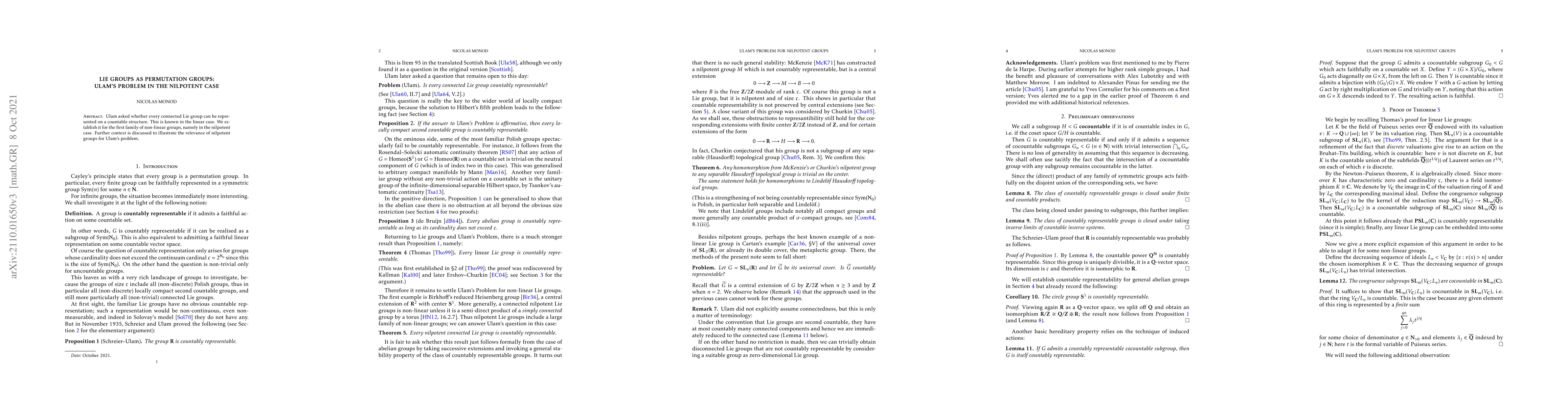 Researchers solve Ulam's problem for connected Lie groups in the nilpotent case, showing that every such group can represent a countable structure, extending a known result to non-linear cases.