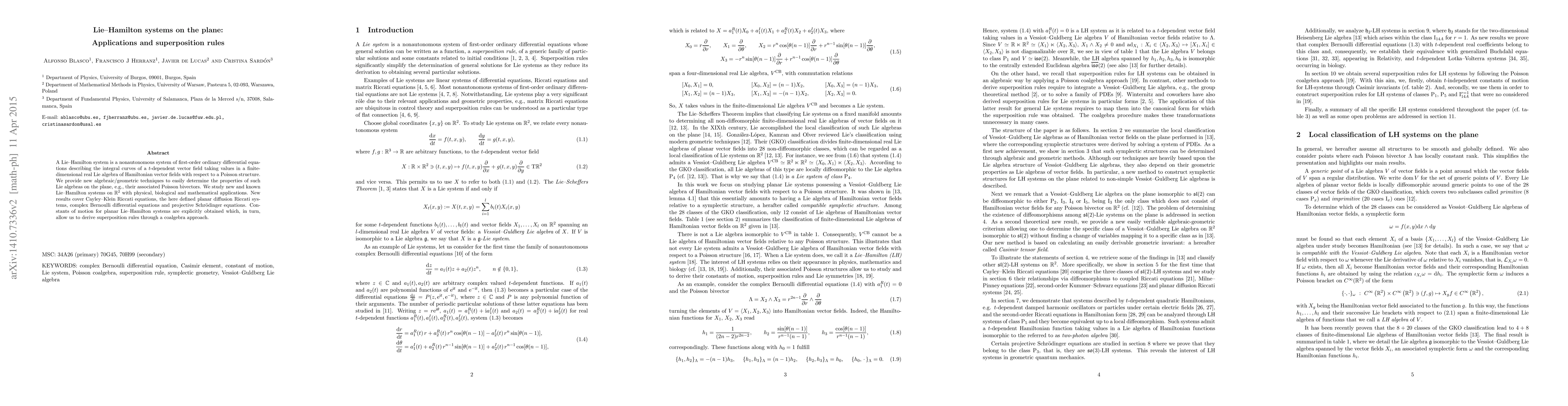 This paper introduces new techniques to analyze Lie-Hamilton systems on the plane, focusing on determining properties of associated Lie algebras and Poisson bivectors. It explores applications in physics, biology, and mathematics, deriving superposition rules and constants of motion through coalgebra.