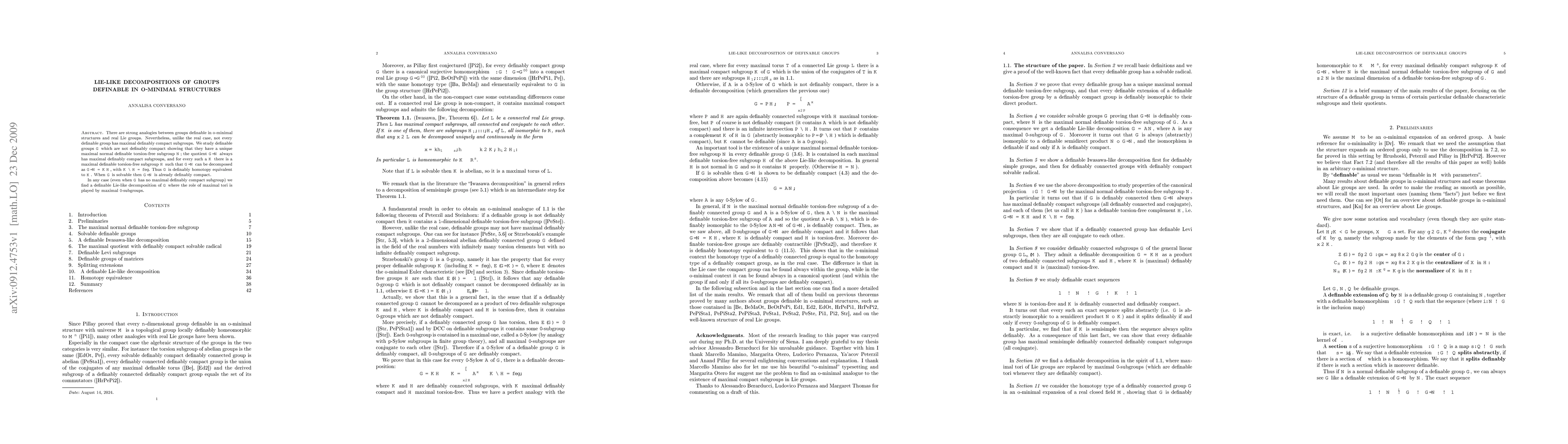 This paper explores the structural decompositions of groups definable in o-minimal structures, revealing that such groups possess a unique maximal normal torsion-free subgroup, and their quotients have maximal definably compact subgroups, enabling a Lie-like decomposition akin to that in real Lie groups.