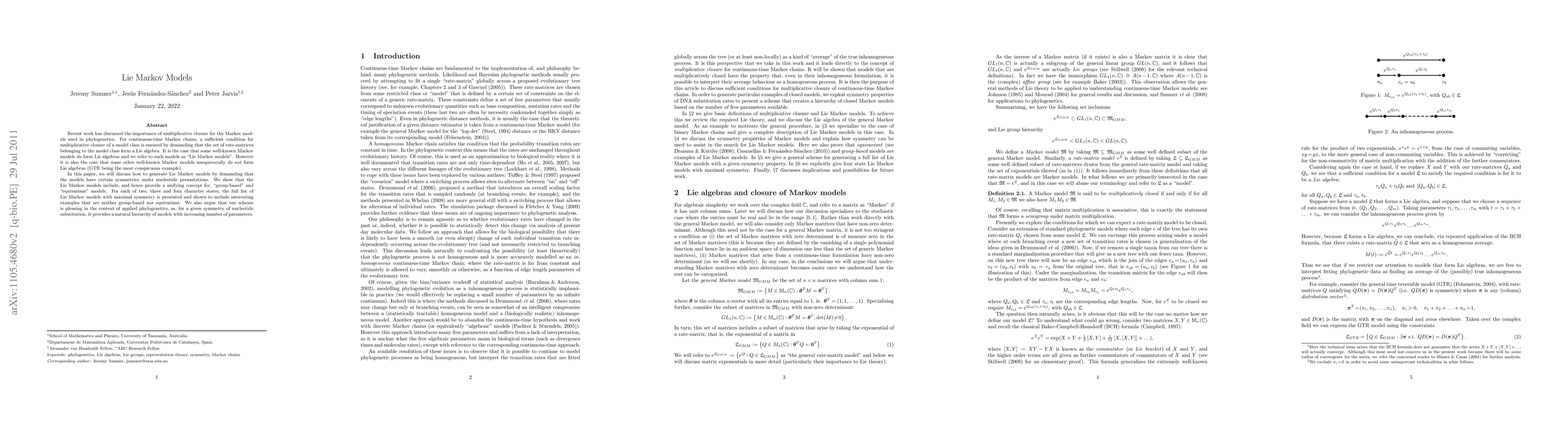 This paper introduces Lie Markov models as a unifying concept for phylogenetics, providing a natural hierarchy of models with increasing parameters based on symmetry under nucleotide permutations.