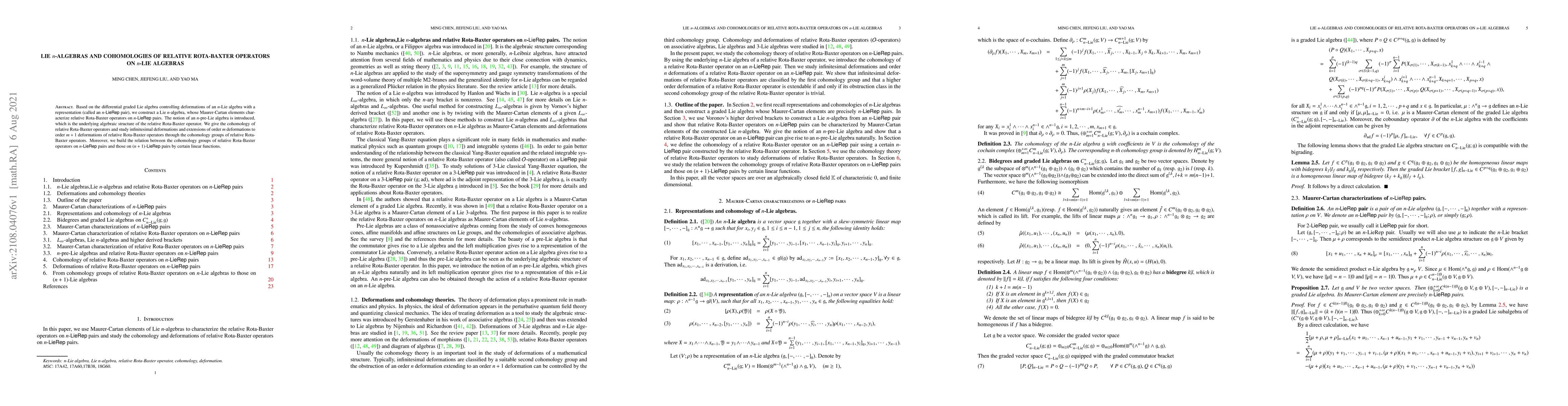 This paper constructs a Lie n-algebra to characterize relative Rota-Baxter operators on n-LieRep pairs and introduces n-pre-Lie algebras as their underlying structure. It studies the cohomology, deformations, and extensions of these operators and establishes a connection between their cohomology groups in n-LieRep and (n+1)-LieRep pairs.