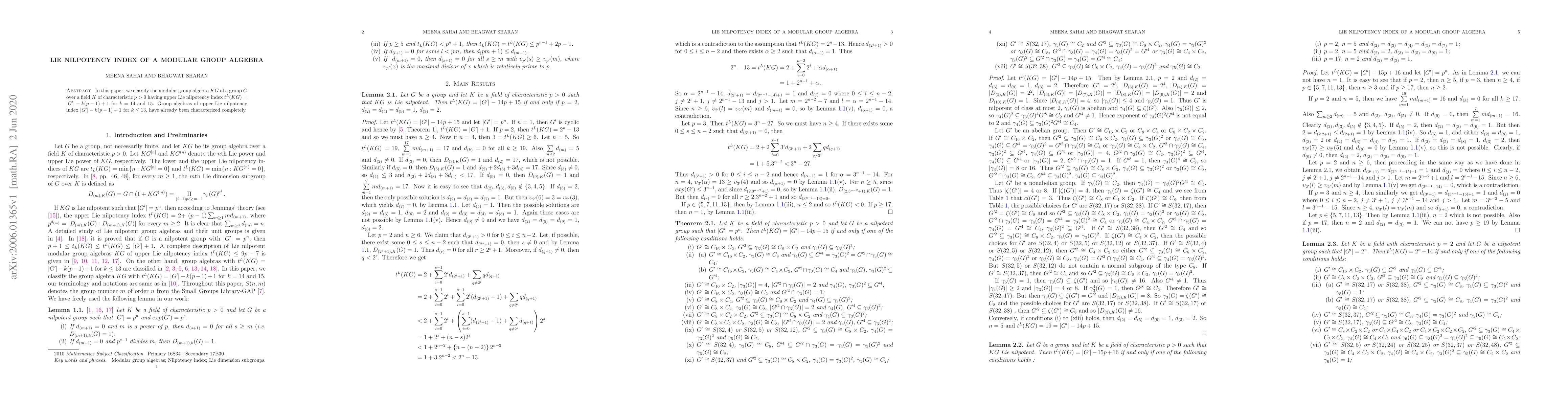 In this paper, we classify the modular group algebra $KG$ of a group $G$ over a field $K$ of characteristic $p>0$ having upper Lie nilpotency index $t^{L}(KG)= \vert G^{\prime}\vert - k(p-1) + 1$ for $k=14$ and $15$. Group algebras of upper Lie nilpotency index $\vert G^{\prime}\vert - k(p-1) + 1$ for $k\leq 13$, have already been characterized completely.