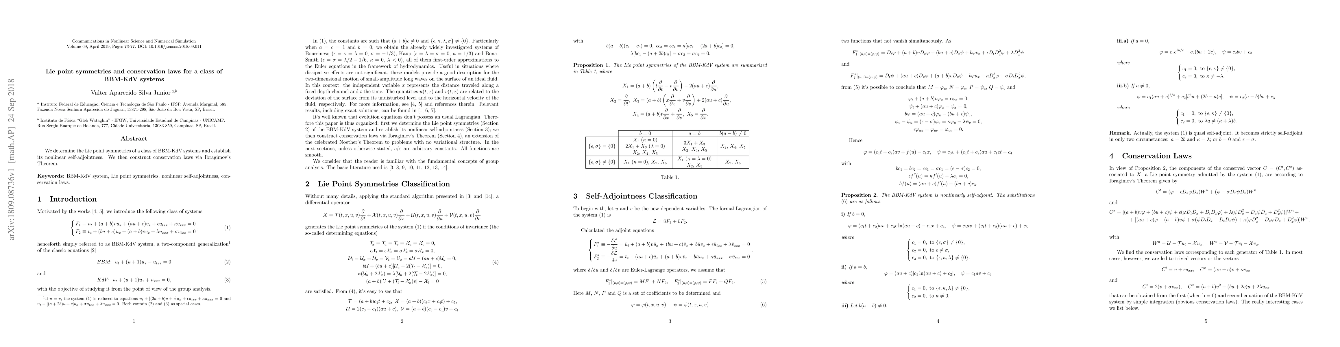 This paper identifies the Lie point symmetries for a class of BBM-KdV systems, demonstrating their nonlinear self-adjointness, and subsequently constructs conservation laws using Ibragimov's Theorem.