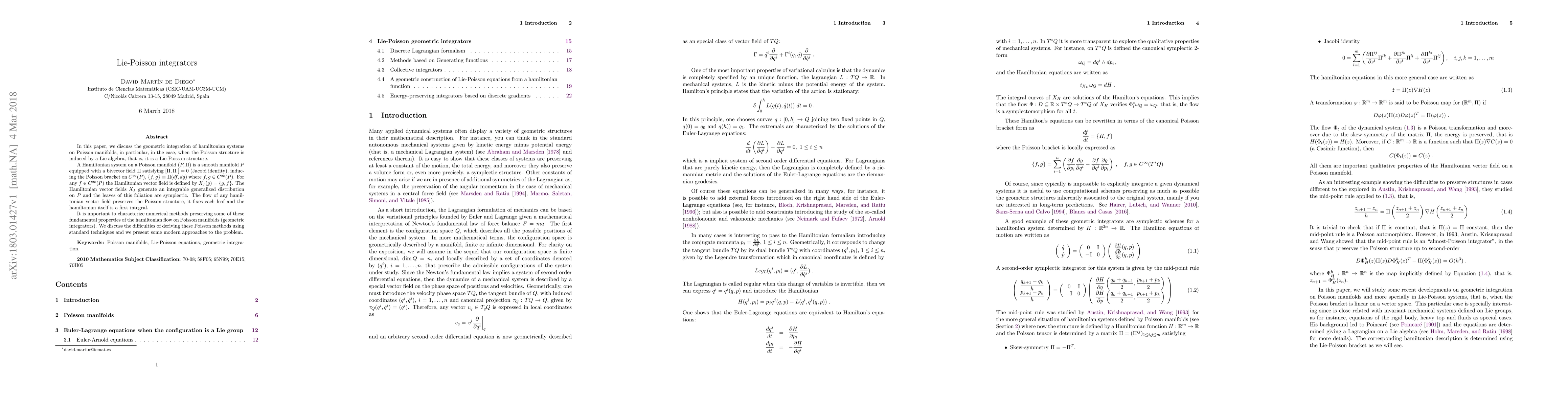 This paper explores the geometric integration of Hamiltonian systems on Poisson manifolds, particularly focusing on Lie-Poisson structures. It discusses the challenges in deriving numerical methods that preserve the fundamental properties of the Hamiltonian flow and presents modern approaches to developing such geometric integrators.