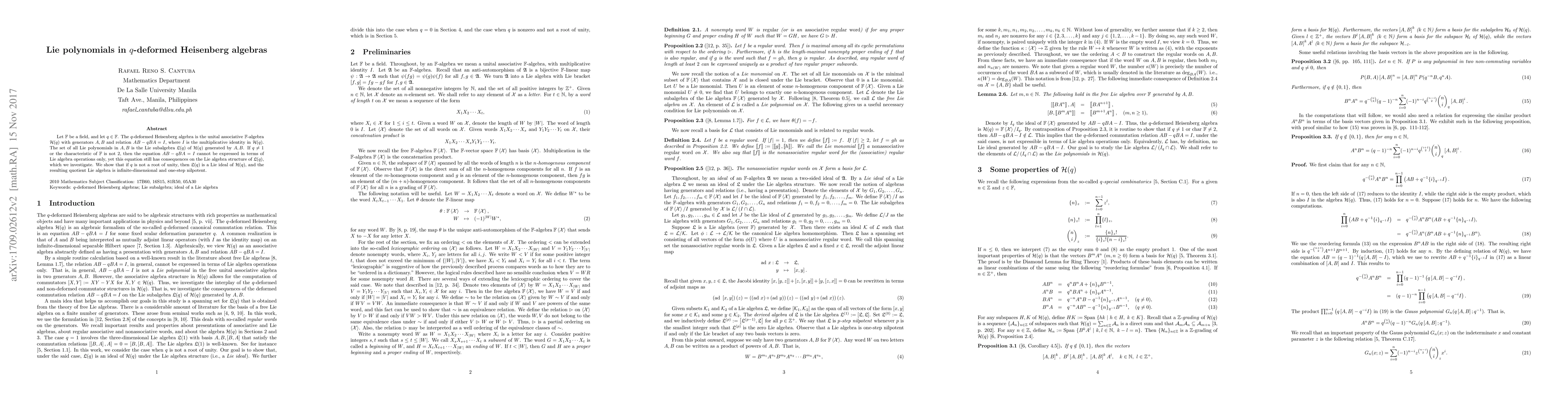 This paper investigates the structure of Lie polynomials in $q$-deformed Heisenberg algebras. It shows that when $q$ is not a root of unity, the Lie subalgebra $\mathcal{L}(q)$ is a Lie ideal of $\mathcal{H}(q)$, leading to an infinite-dimensional, one-step nilpotent quotient Lie algebra.