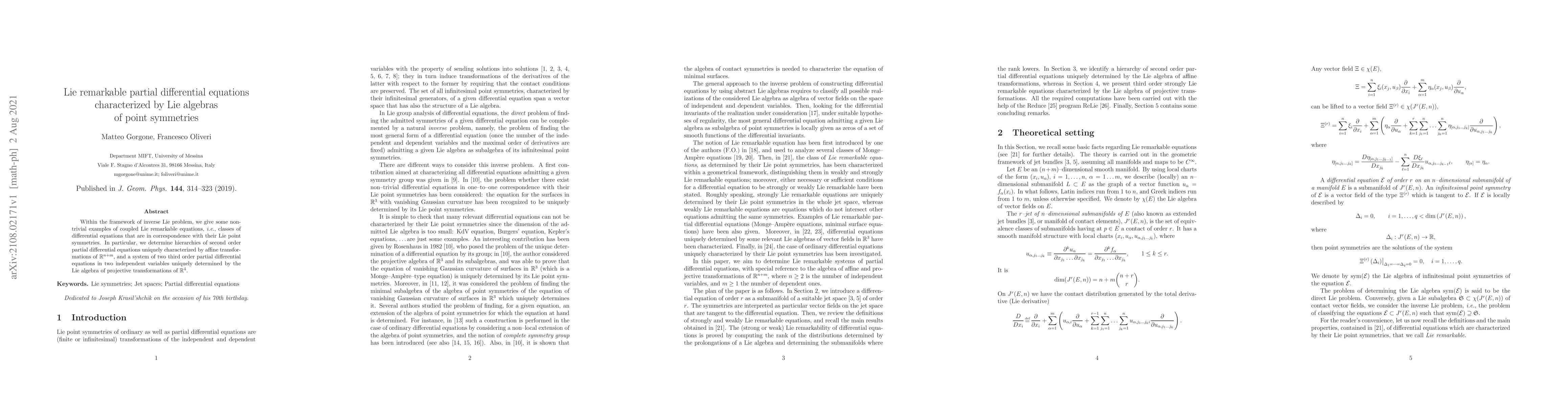Within the framework of inverse Lie problem, we give some non-trivial examples of coupled Lie remarkable equations, \textit{i.e.}, classes of differential equations that are in correspondence with their Lie point symmetries. In particular, we determine hierarchies of second order partial differential equations uniquely characterized by affine transformations of $\mathbb{R}^{n+m}$, and a system of two third order partial differential equations in two independent variables uniquely determined by the Lie algebra of projective transformations of $\mathbb{R}^4$.