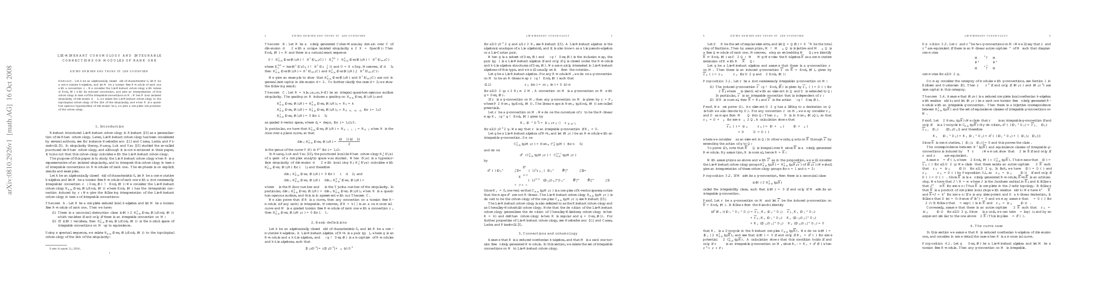 This paper studies Lie-Rinehart cohomology applied to torsion-free rank one $R$-modules with connections, linking it to integrable connections and relating it to topological cohomology for specific algebraic singularities. Complete computations are provided for quasi-homogeneous hypersurface singularities.