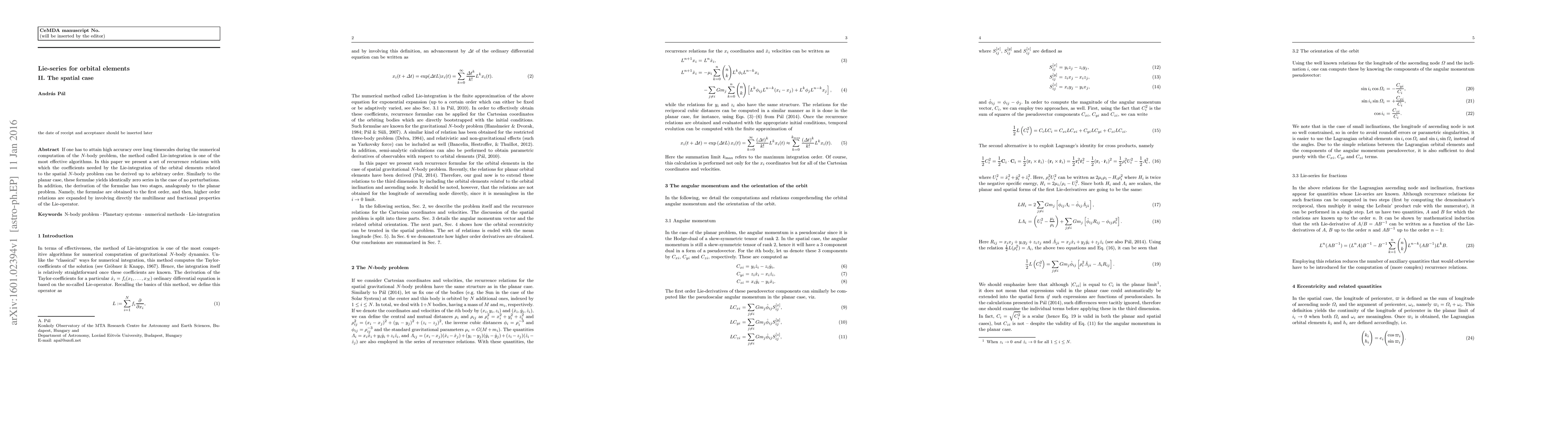 Researchers developed recurrence relations to calculate high accuracy in orbital elements for long-term N-body problem simulations using Lie-integration.