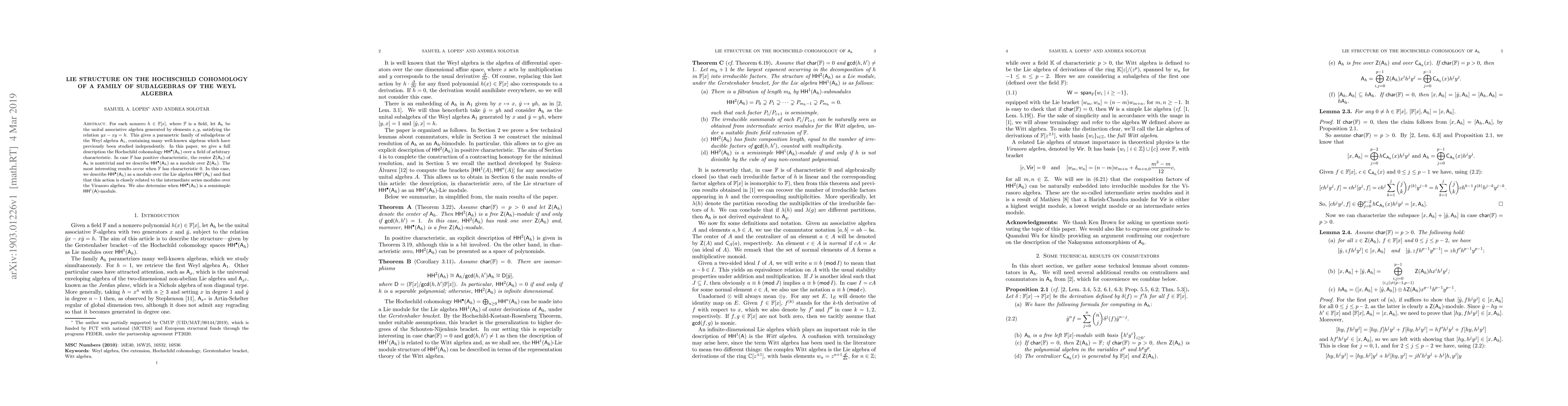 This paper studies the Hochschild cohomology of a family of subalgebras of the Weyl algebra, parameterized by $h \in \mathbb{F}[x]$. It provides a detailed description of $\mathsf{HH}^\bullet(\mathsf{A}_h)$ over fields of any characteristic, revealing a nontrivial center and Lie structure in characteristic $0$ that relates to Virasoro algebra modules.