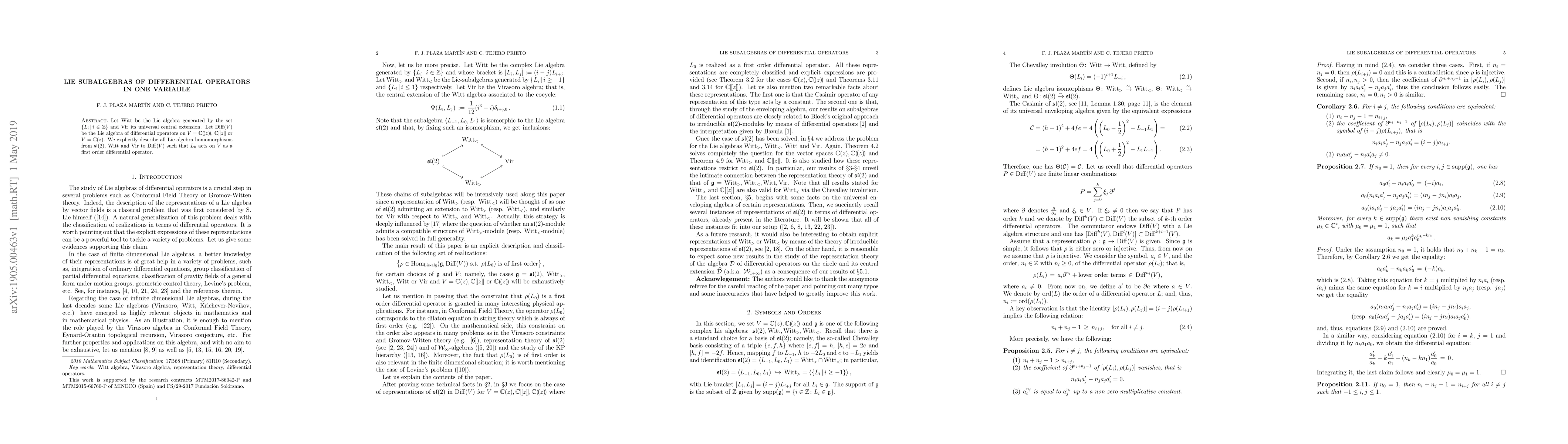 This research paper describes Lie algebra homomorphisms from Virasoro and Witt Lie algebras to the differential operators on specific function fields, focusing on how L0 acts as a first-order differential operator.