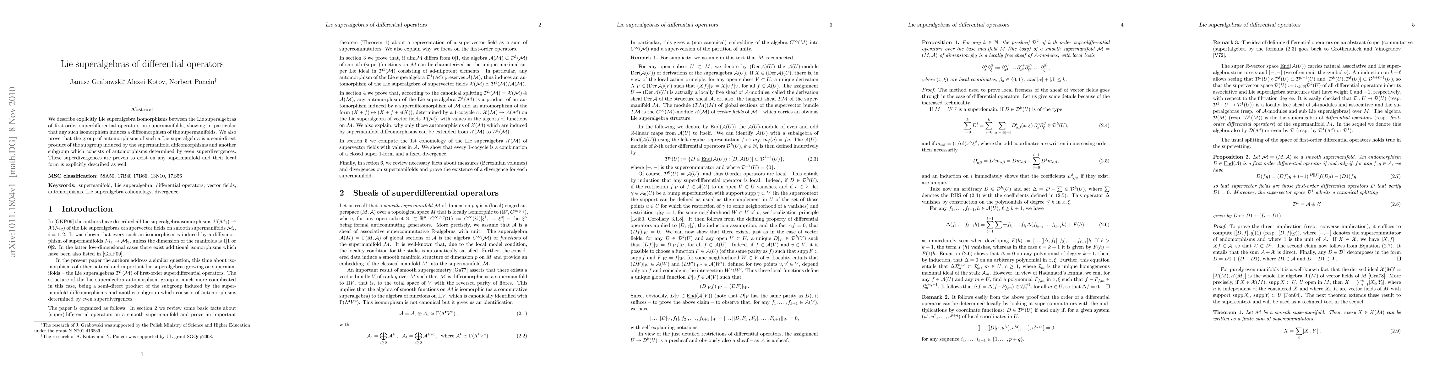 This paper establishes Lie superalgebra isomorphisms between differential operators on supermanifolds, showing that these isomorphisms induce diffeomorphisms of the manifolds. It also introduces a semi-direct product structure for the group of automorphisms of such Lie superalgebras.