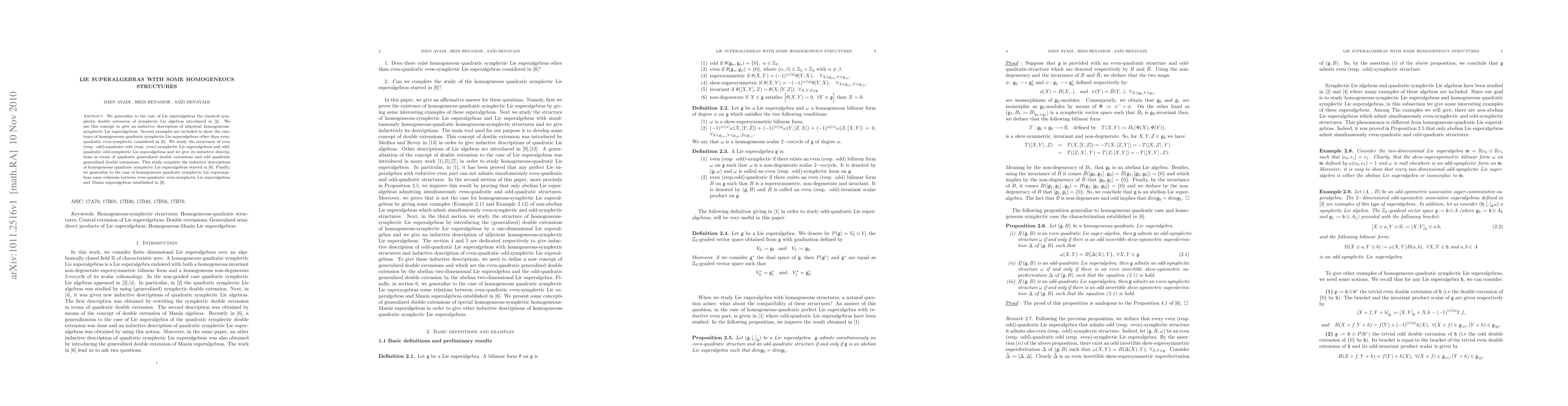 We generalize to the case of Lie superalgebras the classical symplectic double extension of symplectic Lie algebras introduced in [2]. We use this concept to give an inductive description of nilpotent homogeneous-symplectic Lie superalgebras. Several examples are included to show the existence of homogeneous quadratic symplectic Lie superalgebras other than even-quadratic even-symplectic considered in [6]. We study the structures of even (resp. odd)-quadratic odd (resp. even)-symplectic Lie superalgebras and odd-quadratic odd-symplectic Lie superalgebras and we give its inductive descriptions in terms of quadratic generalized double extensions and odd quadratic generalized double extensions. This study complete the inductive descriptions of homogeneous quadratic symplectic Lie superalgebras started in [6]. Finally, we generalize to the case of homogeneous quadratic symplectic Lie superargebras some relations between even-quadratic even-symplectic Lie superalgebras and Manin superalgebras established in [6].