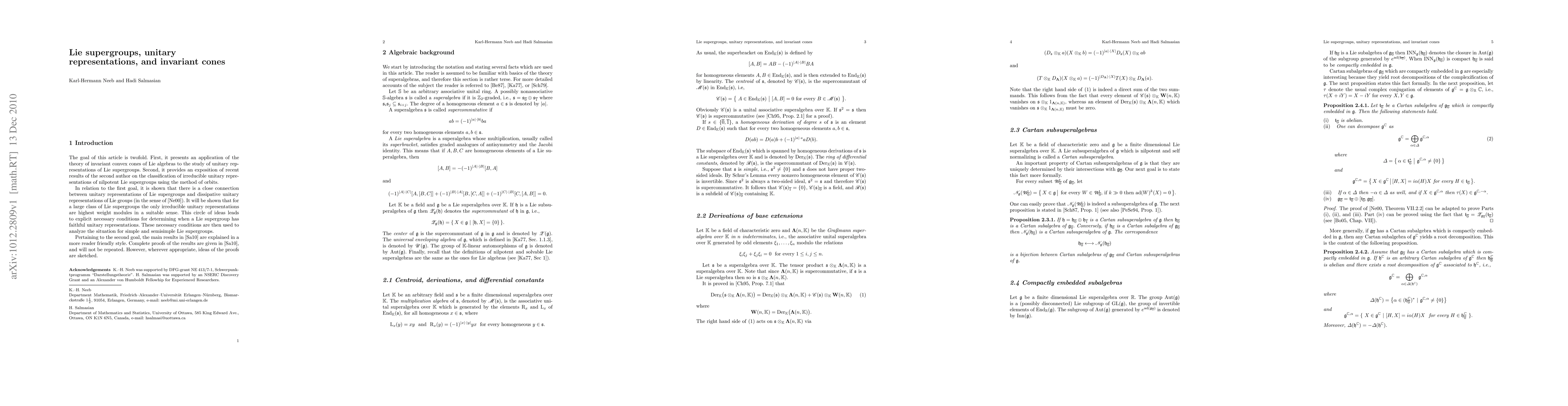 Summary: This paper applies the theory of invariant convex cones in Lie algebras to analyze unitary representations of Lie supergroups and presents recent classification results for irreducible unitary representations of nilpotent Lie supergroups using coadjoint orbit methods.