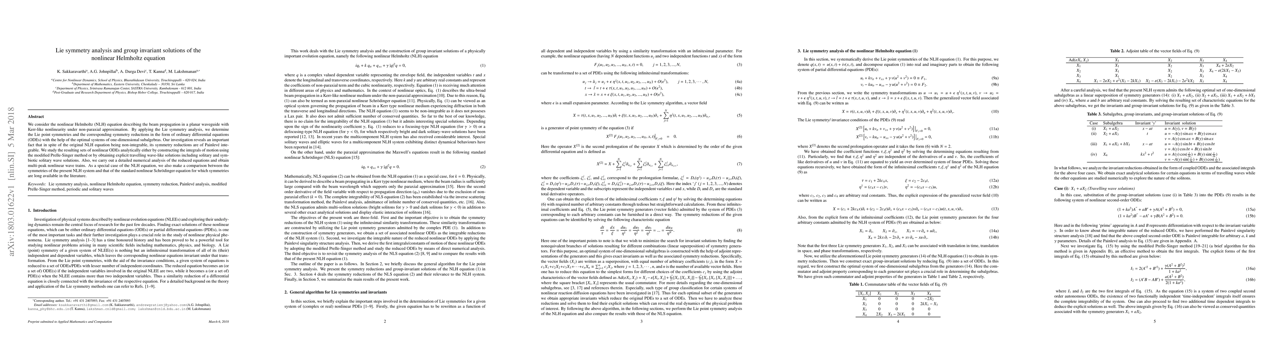 This paper applies Lie symmetry analysis to the nonlinear Helmholtz equation, revealing that while the original equation is non-integrable, its symmetry reductions are Painlevé integrable. It constructs invariant solutions and performs numerical analysis to obtain multi-peak wave trains, comparing the symmetries with the nonlinear Schrödinger equation.