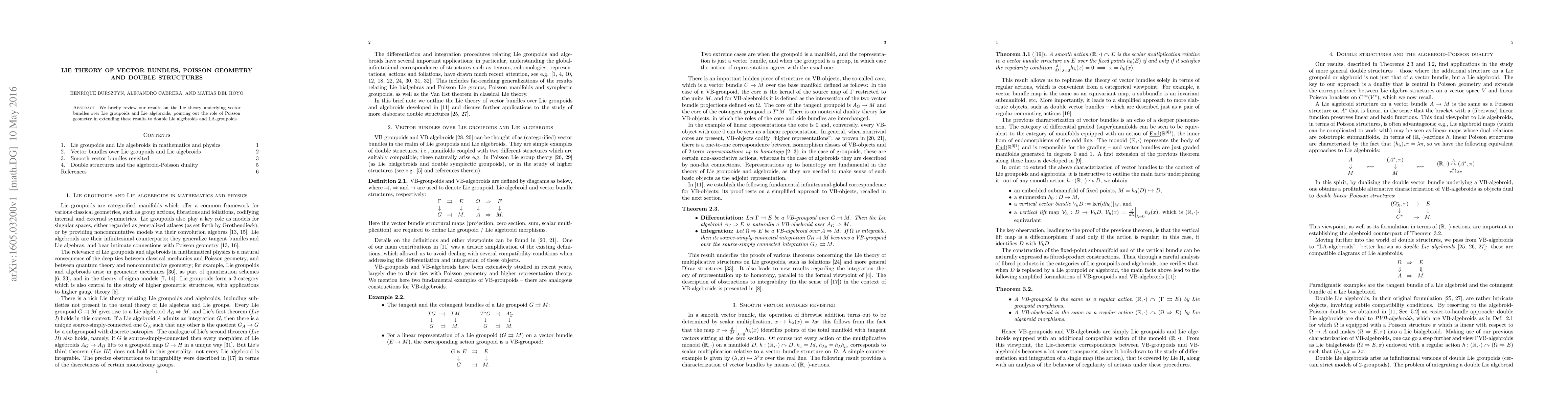 Summary: This paper examines the Lie theory of vector bundles over Lie groupoids and algebroids, emphasizing the integration of Poisson geometry to extend findings to double Lie algebroids and LA-groupoids.