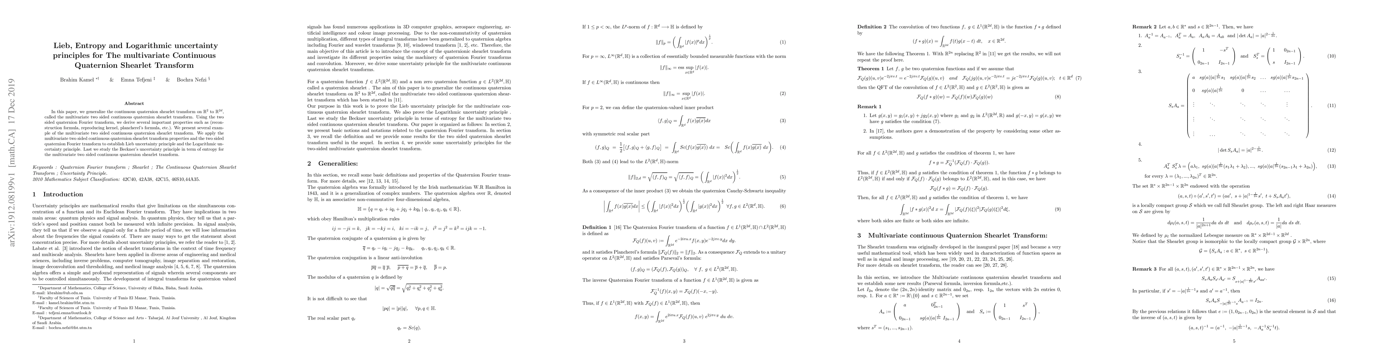 This paper generalizes the continuous quaternion shearlet transform to higher dimensions, establishing properties like reconstruction and Plancherel's formula. It applies these properties to derive Lieb, Logarithmic, and Beckner's uncertainty principles in the context of the multivariate two-sided continuous quaternion shearlet transform.