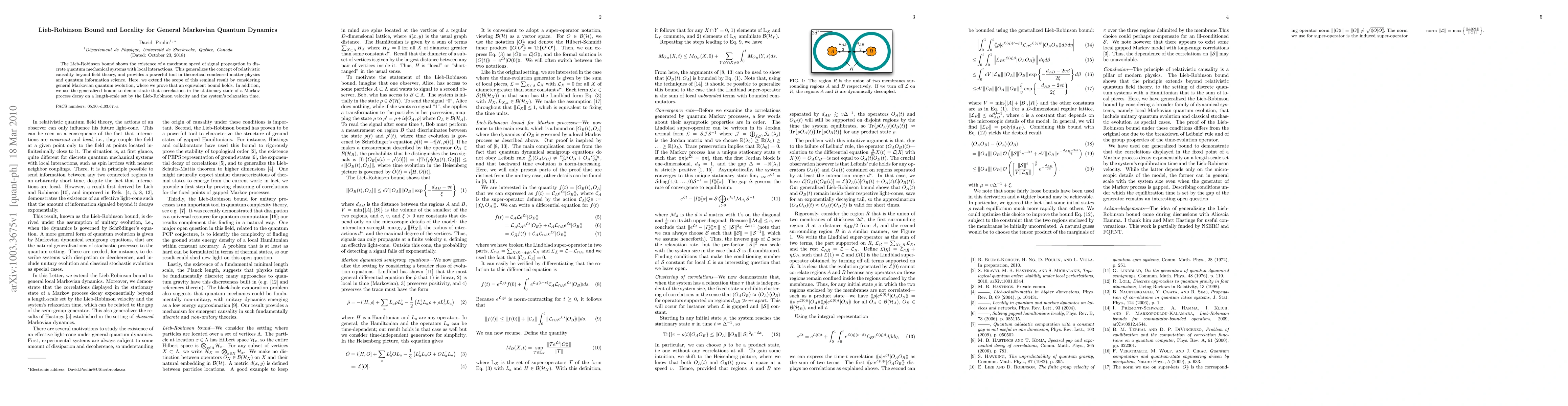 The Lieb-Robinson bound is extended to general Markovian quantum dynamics, showing a maximum signal propagation speed. This generalized bound reveals that correlations in the stationary state decay on a length-scale determined by the Lieb-Robinson velocity and the system's relaxation time.