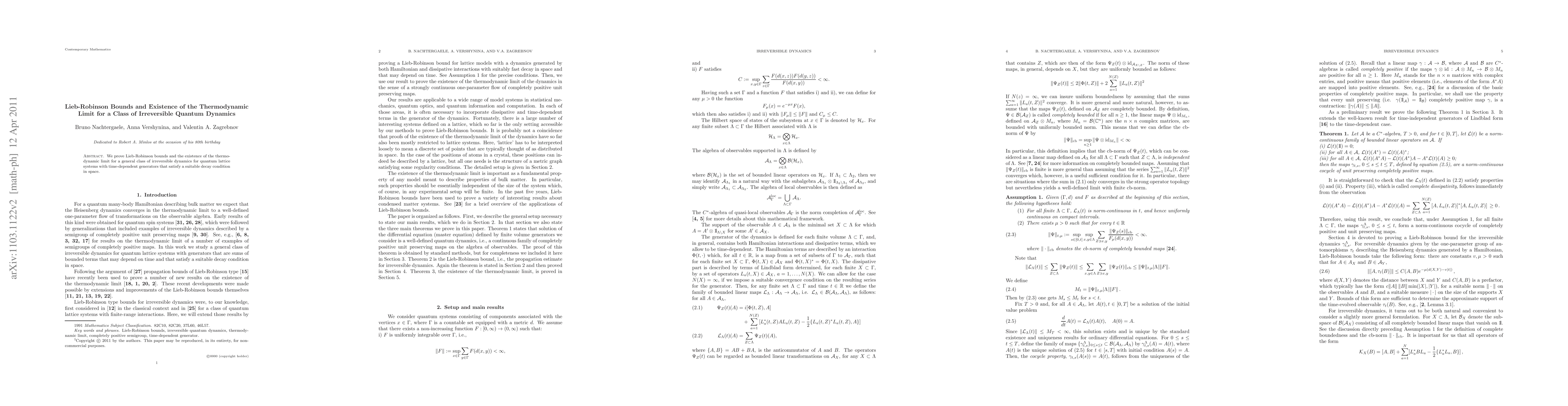 Summary: This paper establishes Lieb-Robinson bounds and confirms the existence of the thermodynamic limit for irreversible quantum dynamics in lattice systems, focusing on time-dependent generators with spatial decay conditions.