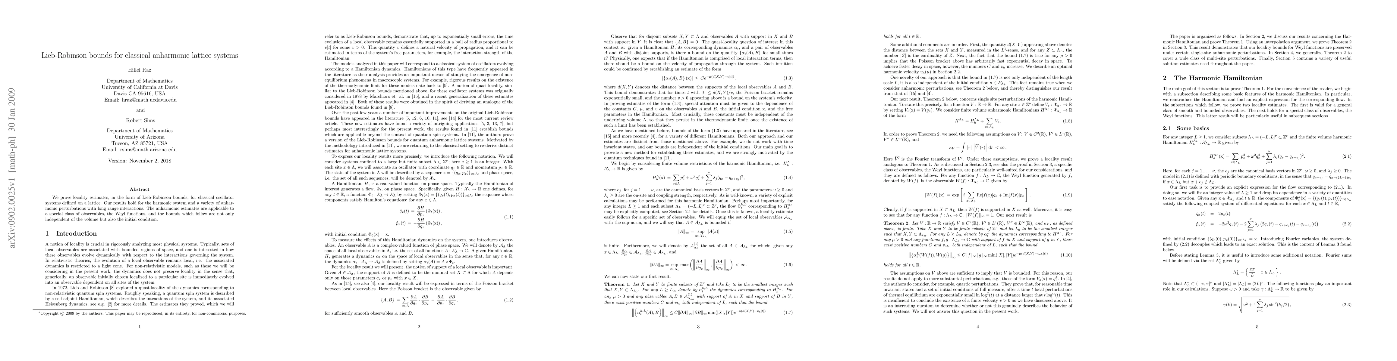 This paper establishes Lieb-Robinson bounds for classical lattice oscillator systems, including both harmonic and various anharmonic perturbations with long-range interactions. The bounds apply to Weyl functions and are independent of both system volume and initial conditions.