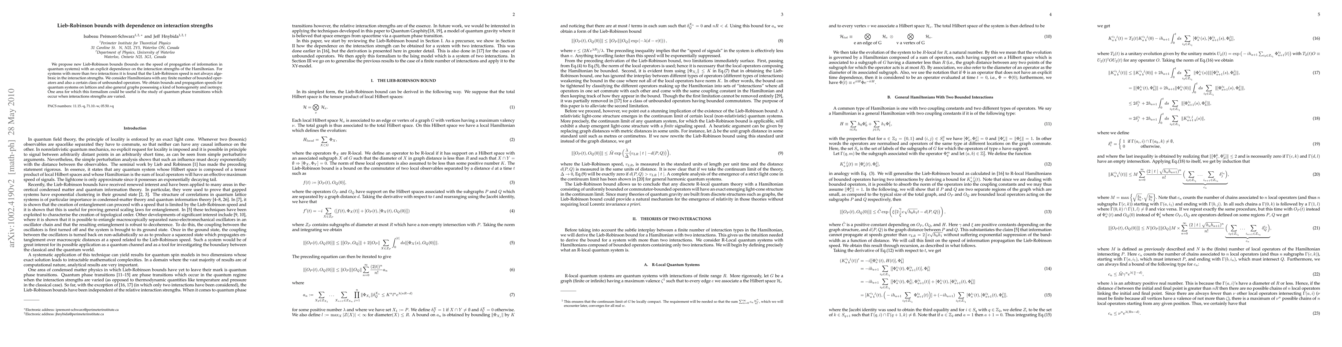 New Lieb-Robinson bounds have been proposed that explicitly depend on interaction strengths in quantum systems, improving our understanding of information propagation and potential applications in studying quantum phase transitions.