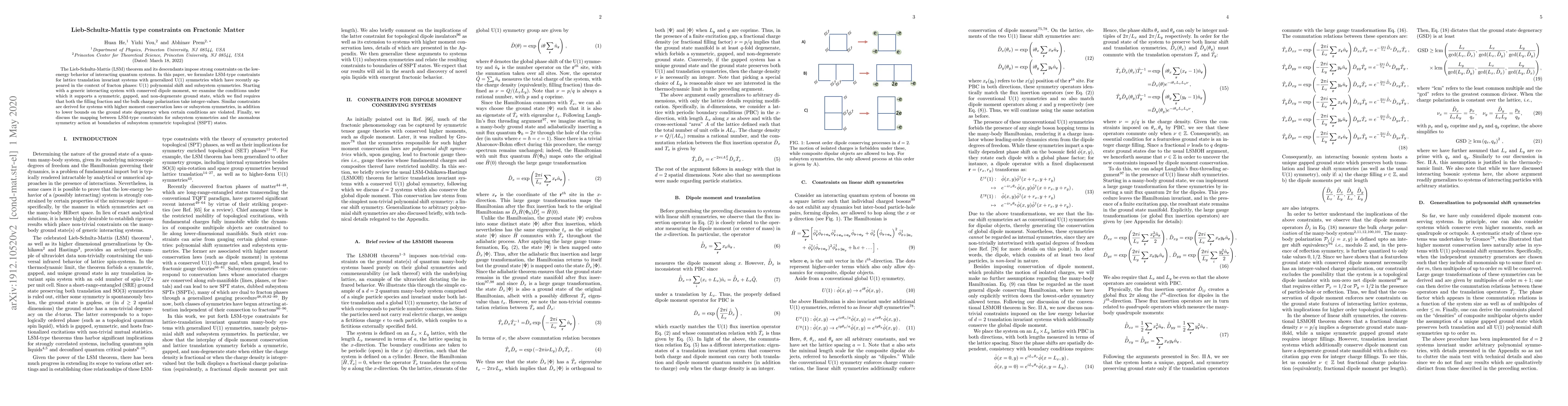 This research paper derives Lieb-Schultz-Mattis constraints for systems with fractonic matter, imposing conditions on filling fraction and bulk charge polarization to support symmetric, gapped ground states.