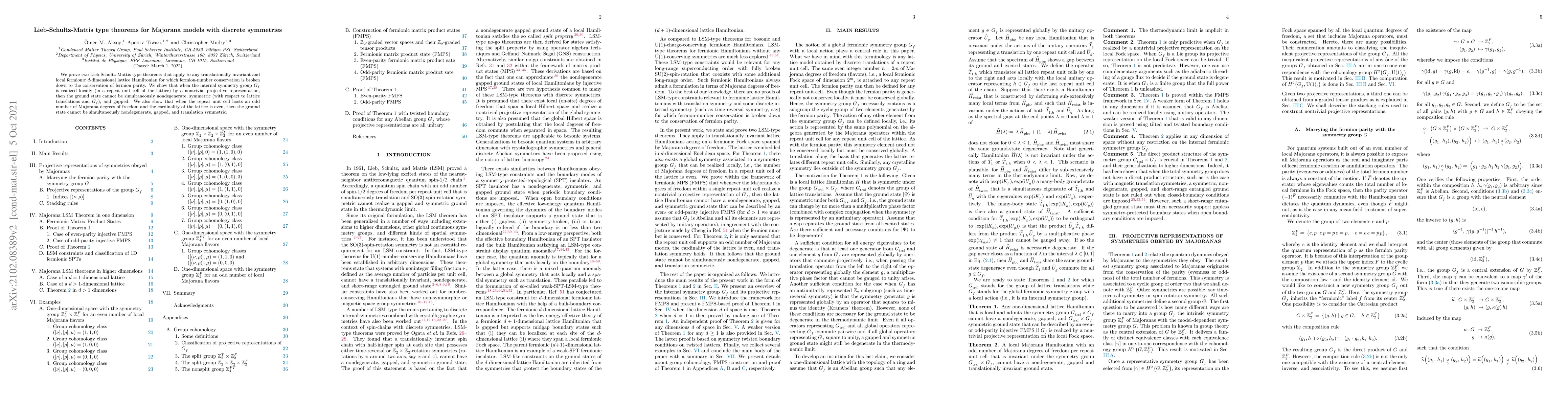 This research proves two theorems for Majorana models with discrete symmetries. It establishes conditions under which a nondegenerate, symmetric, and gapped ground state is impossible for local fermionic lattice Hamiltonians with broken fermion-number conservation. The theorems apply when the internal symmetry group is represented locally by a nontrivial projective representation, or when the repeat unit cell contains an odd number of Majorana degrees of freedom on an even-cardinality lattice.
