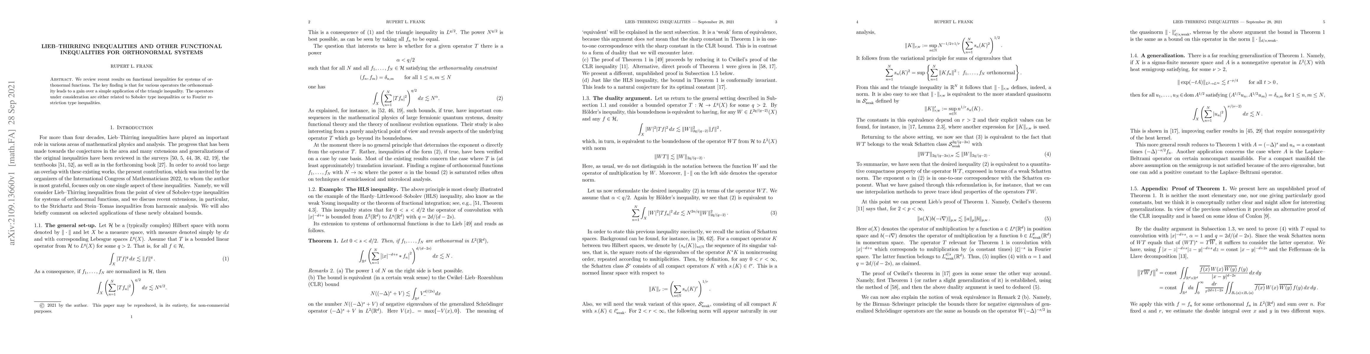 Recent research found that functional inequalities for orthonormal systems yield better results than simple triangle inequality applications due to the system's properties. This discovery has implications for Sobolev-type and Fourier restriction type inequalities.