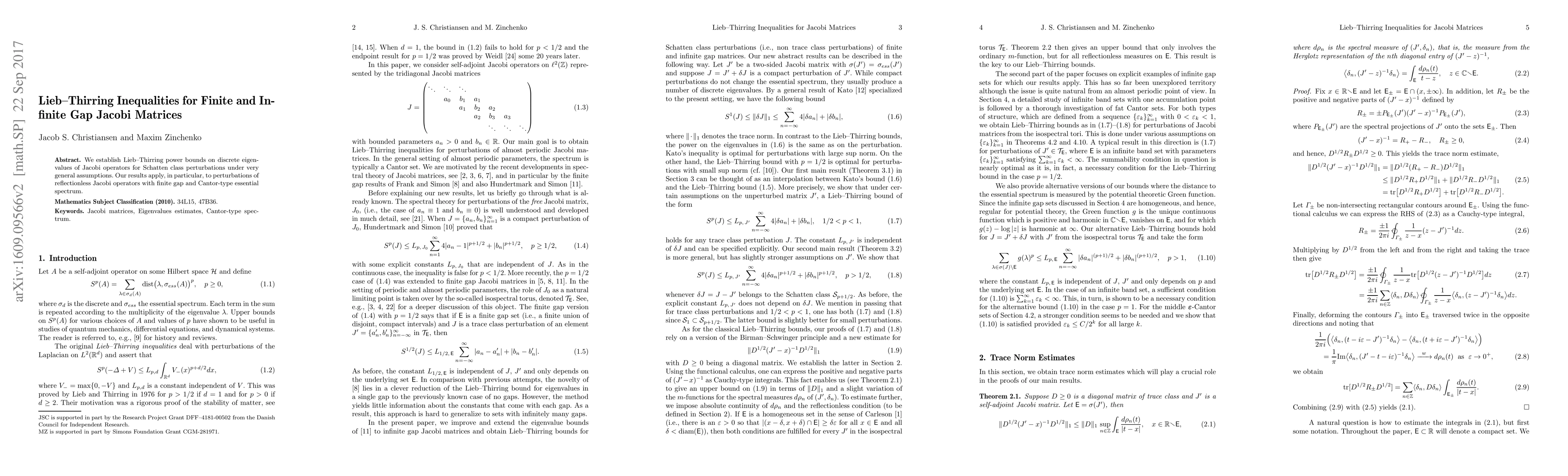 Summary: This paper establishes Lieb-Thirring power bounds for discrete eigenvalues of Jacobi operators under Schatten class perturbations, applicable to reflectionless Jacobi operators with finite gaps and Cantor-type essential spectra. The results extend to both finite and infinite gap scenarios.