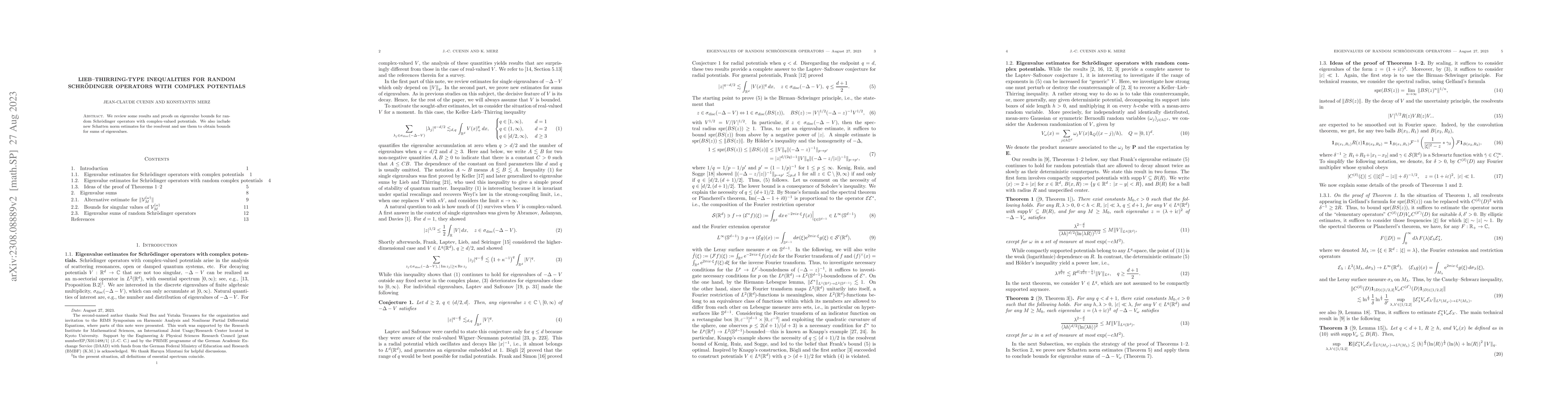 Summary: This paper reviews eigenvalue bounds for random Schrödinger operators with complex potentials and presents new Schatten norm estimates for the resolvent, which are used to derive bounds for sums of eigenvalues.