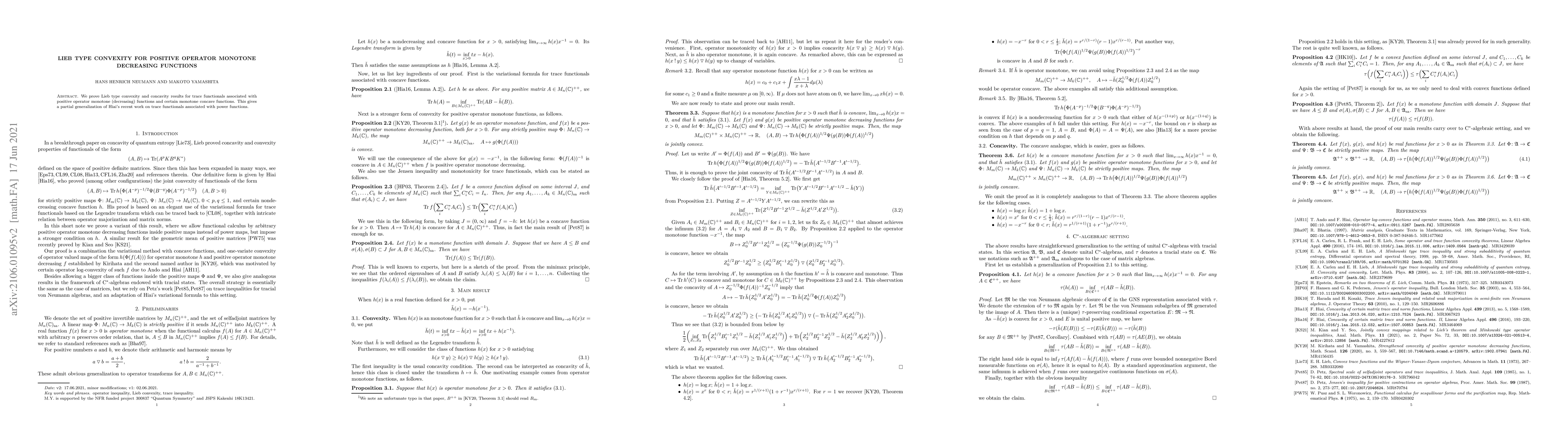 This paper proves Lieb type convexity for trace functionals associated with positive operator monotone decreasing functions, extending Hiai's work on power functions.