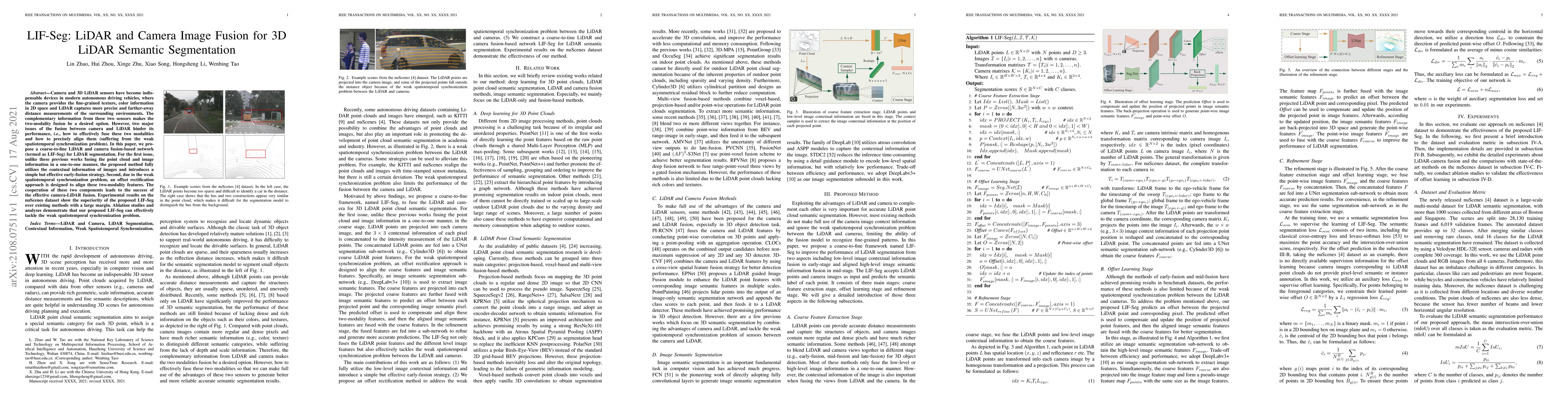 The paper proposes LIF-Seg, a network for LiDAR semantic segmentation that fuses LiDAR and camera data by leveraging contextual image information and an offset rectification approach to address synchronization issues, achieving superior performance on the nuScenes dataset.