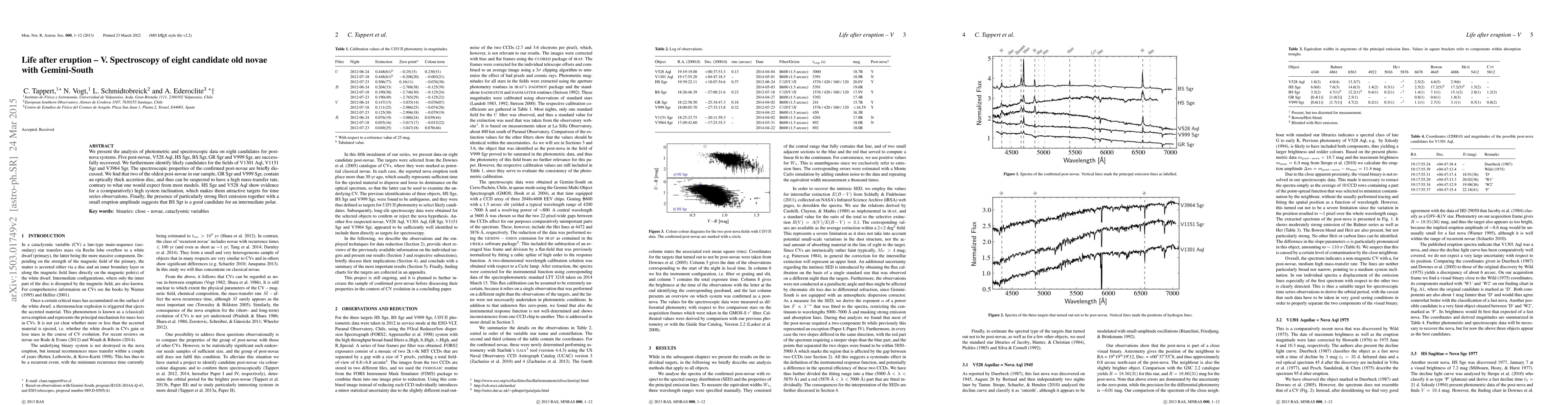We present the analysis of photometric and spectroscopic data on eight candidates for post-nova systems. Five post-novae, V528 Aql, HS Sge, BS Sgr, GR Sgr and V999 Sgr, are successfully recovered. We furthermore identify likely candidates for the fields of V1301 Aql, V1151 Sgr and V3964 Sgr. The spectroscopic properties of the confirmed post-novae are briefly discussed. We find that two of the oldest post-novae in our sample, GR Sgr and V999 Sgr, contain an optically thick accretion disc, and thus can be suspected to have a high mass-transfer rate, contrary to what one would expect from most models. HS Sge and V528 Aql show evidence for a (comparatively) high system inclination, which makes them attractive targets for time-series observations. Finally, the presence of particularly strong He II emission together with a small eruption amplitude suggests that BS Sgr is a good candidate for an intermediate polar.