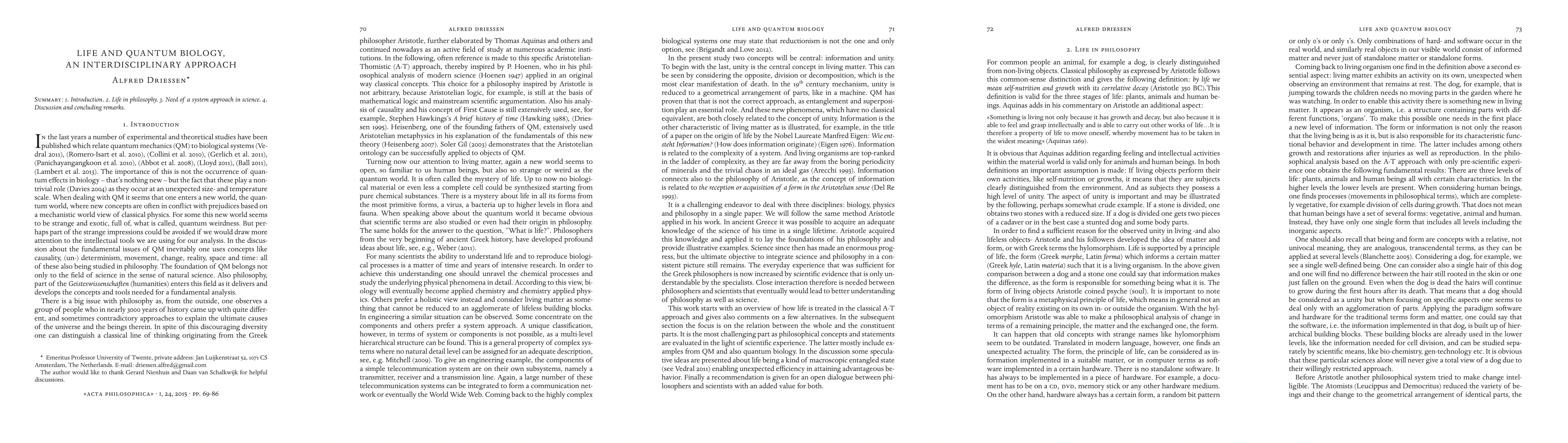 The rapidly increasing interest in the quantum properties of living matter stimulates a discussion of the fundamental properties of life as well as quantum mechanics. In this discussion often concepts are used that originate in philosophy and ask for a philosophical analysis. In the present work the classic philosophical tradition based on Aristotle and Aquinas is employed which surprisingly is able to shed light on important aspects. Especially one could mention the high degree of unity in living objects and the occurrence of thorough qualitative changes. The latter are outside the scope of classical physics where changes are restricted to geometrical rearrangement of microscopic particles. A challenging approach is used in the philosophical analysis as the empirical evidence is not taken from everyday life but from 20th century science (quantum mechanics) and recent results in the field of quantum biology. In the discussion it is argued that quantum entanglement is possibly related to the occurrence of life. Finally it is recommended that scientists and philosophers should be open for dialogue that could enrich both. Scientists could redirect their investigation, as paradigm shifts like the one originating from philosophical evaluation of quantum mechanics give new insight about the relation between the whole en the parts. Whereas philosophers could use scientific results as a consistency check for their philosophical framework for understanding reality.