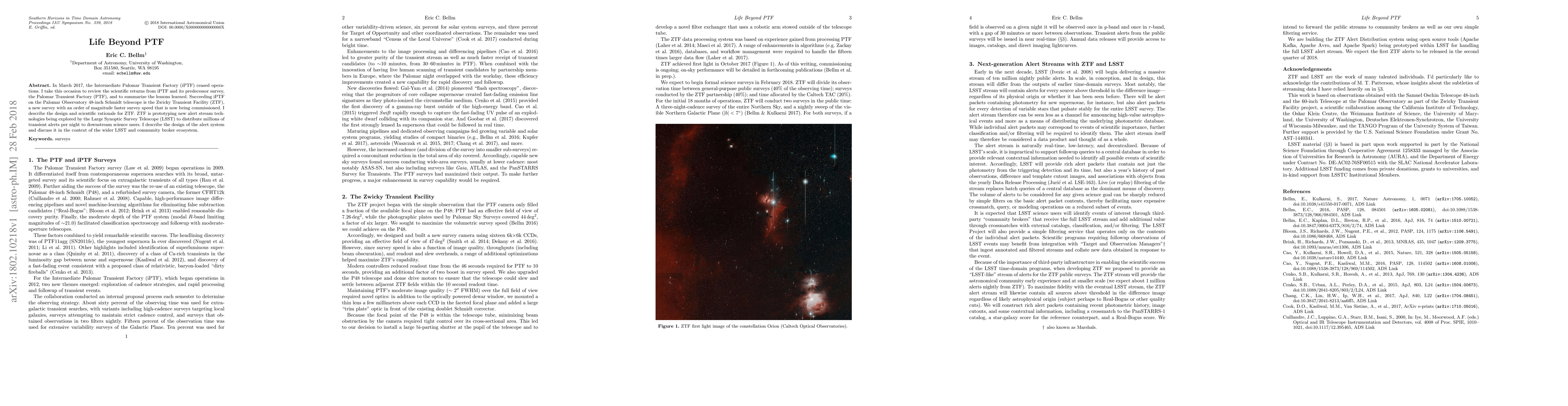 In March 2017, the Intermediate Palomar Transient Factory (iPTF) ceased operations. I take this occasion to review the scientific returns from iPTF and its predecessor survey, the Palomar Transient Factory (PTF), and to summarize the lessons learned. Succeeding iPTF on the Palomar Observatory 48-inch Schmidt telescope is the Zwicky Transient Facility (ZTF), a new survey with an order of magnitude faster survey speed that is now being commissioned. I describe the design and scientific rationale for ZTF. ZTF is prototyping new alert stream technologies being explored by the Large Synoptic Survey Telescope (LSST) to distribute millions of transient alerts per night to downstream science users. I describe the design of the alert system and discuss it in the context of the wider LSST and community broker ecosystem.