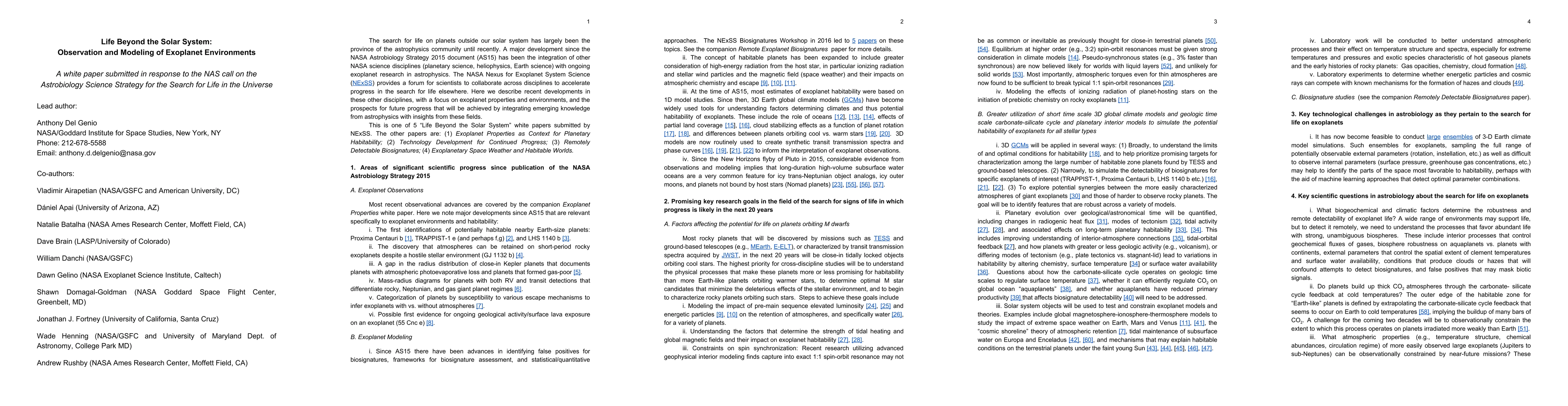 The search for life on planets outside our solar system has largely been the province of the astrophysics community until recently. A major development since the NASA Astrobiology Strategy 2015 document (AS15) has been the integration of other NASA science disciplines (planetary science, heliophysics, Earth science) with ongoing exoplanet research in astrophysics. The NASA Nexus for Exoplanet System Science (NExSS) provides a forum for scientists to collaborate across disciplines to accelerate progress in the search for life elsewhere. Here we describe recent developments in these other disciplines, with a focus on exoplanet properties and environments, and the prospects for future progress that will be achieved by integrating emerging knowledge from astrophysics with insights from these fields.