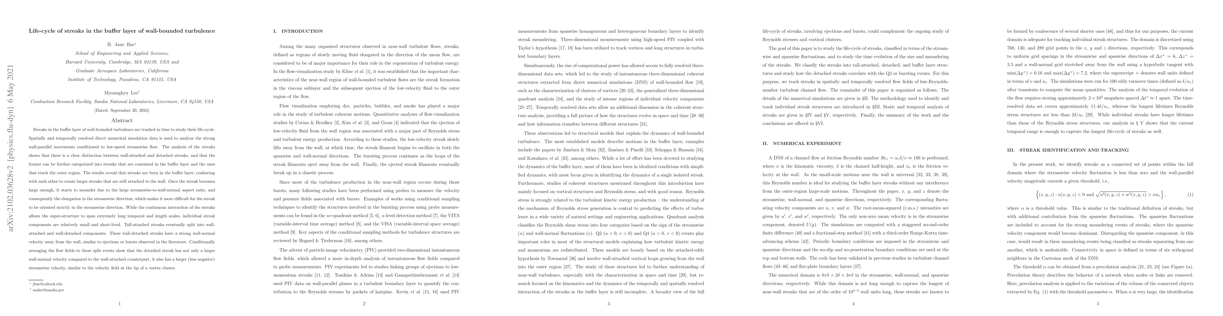 This paper investigates the life-cycle of streaks in the buffer layer of wall-bounded turbulence using direct numerical simulations. It reveals that streaks originate in the buffer layer, grow by coalescing, and eventually detach, exhibiting strong wall-normal and streamwise velocities akin to ejections or vortex clusters.