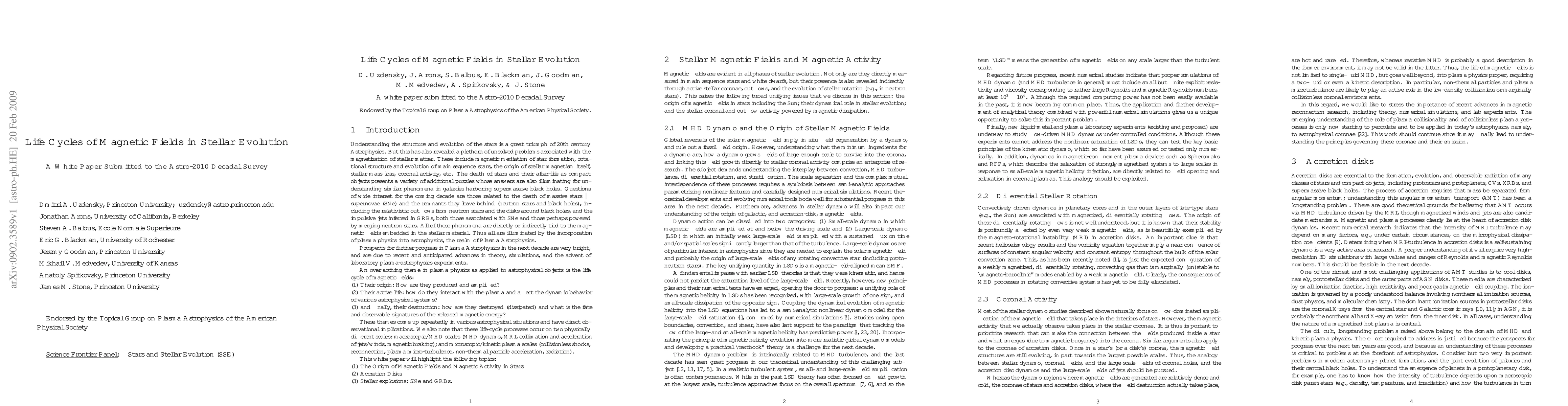 This is a white paper submitted to the Stars and Stellar Evolution (SSE) Science Frontier Panel (SFP) of the NRC's Astronomy and Astrophysics 2010 Decadal Survey. The white paper is endorsed by the American Physical Society's (APS) Topical Group on Plasma Astrophysics (GPAP).