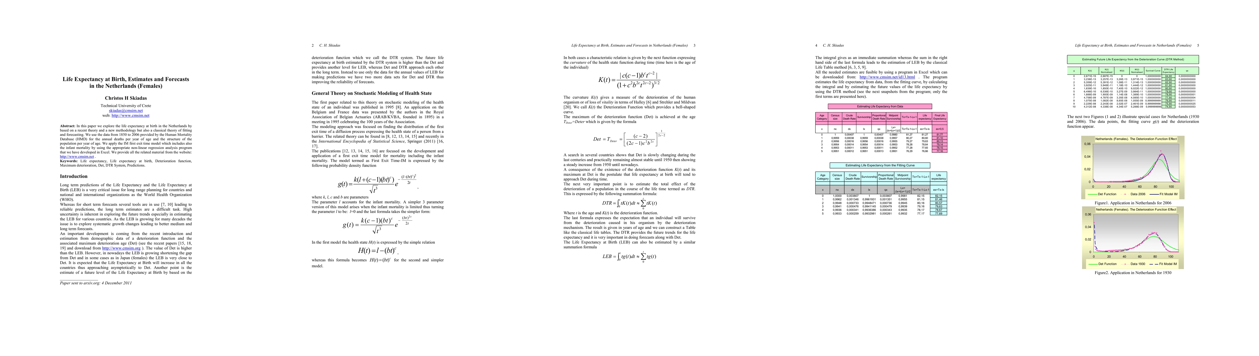 In this paper we explore the life expectancy at birth in the Netherlands by based on a recent theory and a new methodology but also a classical theory of fitting and forecasting. We use the data from 1850 to 2006 provided by the Human Mortality Database (HMD) for the annual deaths per year of age and the structure of the population per year of age. We apply the IM first exit time model which includes also the infant mortality by using the appropriate non-linear regression analysis program that we have developed in Excel. We provide all the related material from the website: http://www.cmsim.net