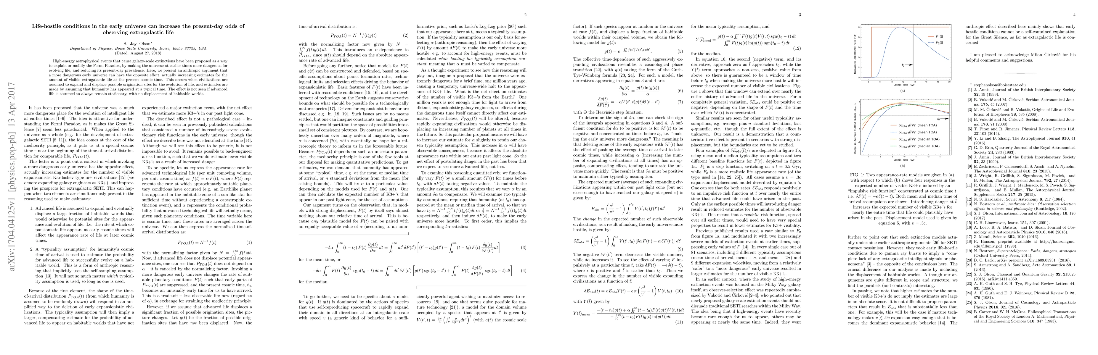 This paper argues that life-hostile conditions in the early universe, such as high-energy astrophysical events, may paradoxically increase the present-day likelihood of observing extragalactic life due to the displacement of civilizations expanding across galaxies. This counterintuitive result contrasts with the assumption that such conditions would reduce life's prevalence.