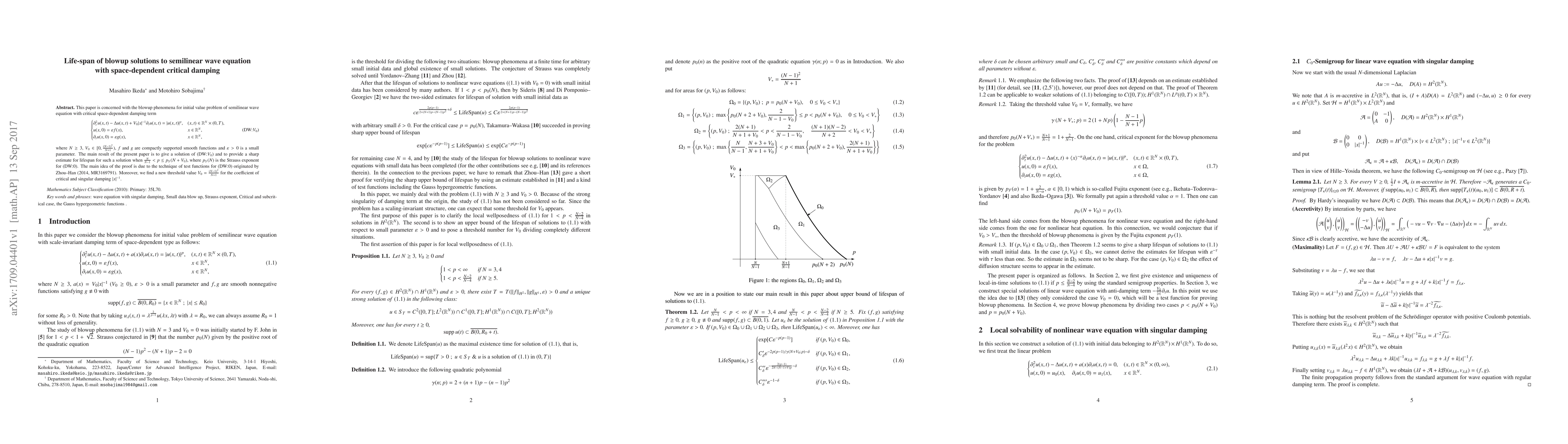 This paper is concerned with the blowup phenomena for initial value problem of semilinear wave equation with critical space-dependent damping term (DW:$V$). The main result of the present paper is to give a solution of the problem and to provide a sharp estimate for lifespan for such a solution when $\frac{N}{N-1}