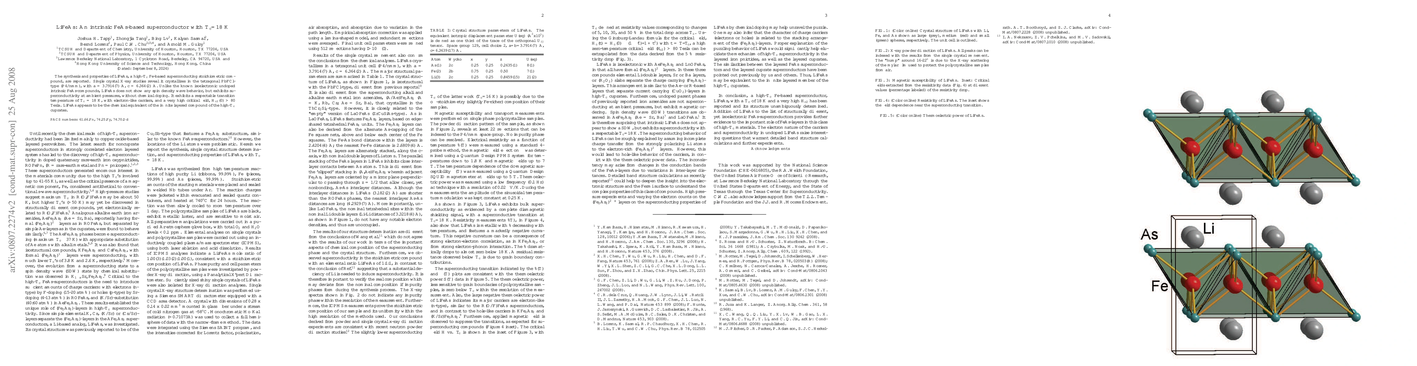 The synthesis and properties of LiFeAs, a high-Tc Fe-based superconducting stoichiometric compound, are reported. Single crystal x-ray studies reveal that it crystallizes in the tetragonal PbFCl type (P4/nmm) with a=3.7914(7) A and c=6.364(2) A. Unlike the known isoelectronic undoped intrinsic FeAs compounds, LiFeAs does not show any spin-density wave behavior but exhibits superconductivity at ambient pressures without chemical doping. It exhibits a respectable transition temperature of Tc=18 K with electronlike carriers and a very high critical field, Hc2(0)>80 T. LiFeAs appears to be the chemical equivalent of the infinite layered compound of the high-Tc cuprates.